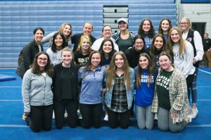 Back row: Dyanne Lewis, Marty McLain-former A.D., Missy Kott, Cindy Fushimi, Dana Ullman, Shea Stammen-former coach. Middle row: Lindsey Bauer, Paige Martinski, Selena Fushimi-Karns, Celeste Fushimi-Karns, Jaclyn Turner, Maddie Beal, Sam Ingham, Kayla Rice, Allie Guist, Tania Criag, Kayla Shelby, Marissa Giordano, Bethany Lange. Not pictured Kaitlin Troutner. Front row: current team Lee Sellers Sophie Baker, Kenzie Stevens, Emily Mosic, Kate Morton, Abby Deitrick, Reagan Leo, Senna Harrison, Trinity Leo, Laurel Rhodes, Kinsley Capuano, Sophie Seculov.